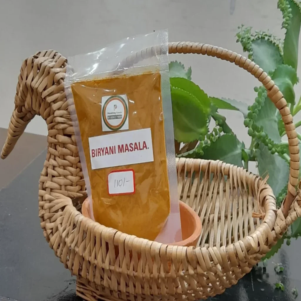 Crafted from handpicked whole spices, our Biryani Masala captures the authentic aroma and royal taste of traditional biryani. Free from artificial colors and preservatives, it brings out a rich, spicy flavor that makes every grain of rice an experience.